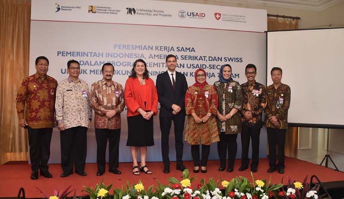 Bupati Bogor, Ade Yasin menghadiri peresmian kerjasama Pemerintah Indonesia, Amerika Serikat dan Swiss dalam program kemitraan United States Agency for International Development (USAID) – Swiss State Secretariat for Economic Affairs (SECO) untuk mendukung kinerja Perusahaan Daerah Air Minum (PDAM) bertempat di The Hermitage Hotel, Menteng, Jakarta Pusat pada Rabu (26/6).