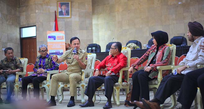 INILAHONLINE.COM, BOGOR – Wali Kota Bogor Bima Arya bersama para rektor dari lima perguruan tinggi di Bogor dan para tokoh hadir sebagai narasumber dalam acara Dialog Interaktif yang bertajuk “Kampus Bicara” di Paseban Sri Baduga, Balai Kota Bogor, jalan Ir. Djuanda, Kota Bogor, Senin (13/8/2018).