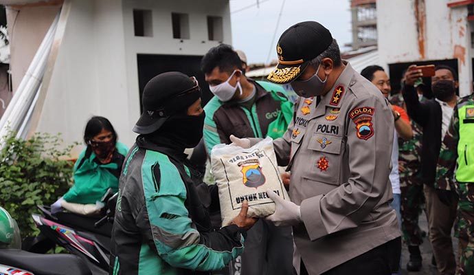 Kapolda menambahkan, bantuan berupa sembako dalam hari ini di seluruh Jateng, ada sekitar 12.000 lebih titik yang dilaksanakan. Kami laksanakan secara door to door, pangkalan ojol.
