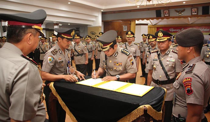 “Mutasi jabatan di lingkungan Polda Jateng merupakan hal biasa, untuk melakukan penyegaran dan perubahan di lingkungannya,” ujar Kapolda Jateng dalam serah terima jabatan pejabat Utama di lingkungan Polda Jateng di Gedung Borobudur Mapolda Jateng.