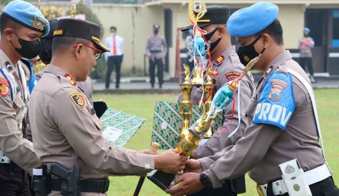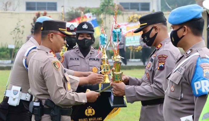 Selain itu Kapolres Magelang juga menyerahkan piala lomba beberapa cabang olahraga tingkat Polres Magelang dalam rangka Hari Bhayangkara ke-76