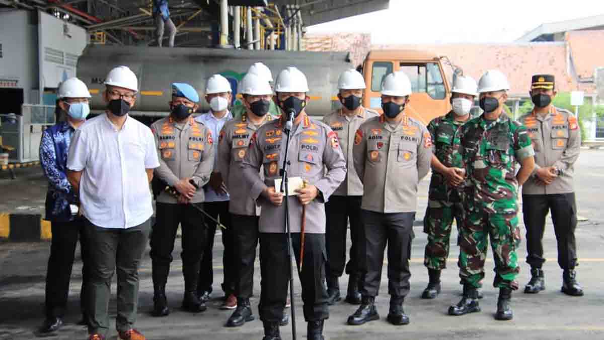 INILAHONLINE.COM, BEKASI — Kapolri Jenderal Listyo Sigit Prabowo meninjau langsung pabrik minyak goreng PT Mikie Oleo Nabati Industri Bekasi, Jawa Barat, Rabu (16/3/2022). Dalam pengecekannya, Kapolri memastikan proses produksi hingga pendistribusian ke pasar untuk memenuhi kebutuhan masyarakat.