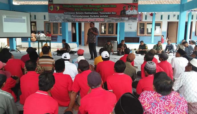 Satgas TMMD ke-104, Kodim 0824/Jember berupaya untuk terus membuka wawasan masyarakat mengenai bahaya peredaran narkoba dan narkotika yang saat ini sudah mulai merajalela.