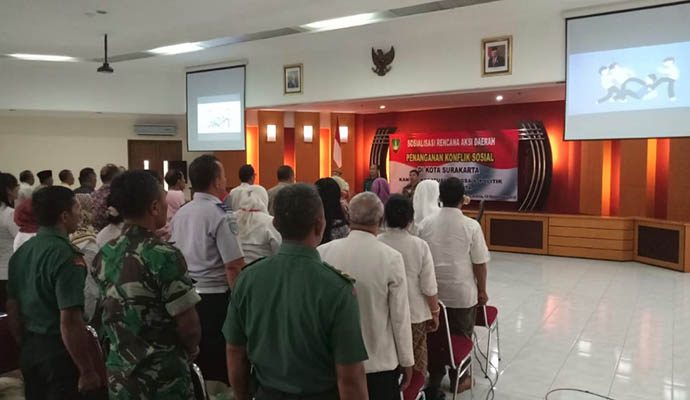 Hadir dalam kegiatan tersebut sebagai berikut Kapten Inf Zaenal (Binda Jateng), AKP Sukowiyono, SH. MH (Kanit III Bid. Sosbud Polresta Surakarta), Iptu Teguh Wibawanto (Kanit IK Polsek Pasar Kliwon), Indradi, AP. SH. MM (Ka Kesbangpol Kota Surakarta), Drs. Joko Widodo (Kasi Wasnas Poldagri Kesbangpol Kota Surakarta), Nurul Sutarti, SH. MH (Ketua KPU Kota Surakarta), Lois Yulianto, S.Kel. MA (LPPSP Semarang), Bagito Hadi (PHDI Surakarta), Paulus Lalihat (BAGKS), Agus Suprapto (Kantor Imigras Surakarta), Muh. Takqqin (Baswaslu Surakarta), Ismanto (MUI Kota Surakarta), Andri W. (Bank Indonesia), Damaiana ( Pertanahan Surakarta), Syarif Tri W. (Korwil Solo Raya), Singkirno (BPBD Kota Surakarta), Perwakilan Koramil Jajaran Kodim 0735 Surakarta, Polsek Jajaran Polresta Surakarta, Kecamatan se-Kota Surakarta, Lurah Se Kota Surakarta dan LPKM Kelurahan se-Kota Surakarta.