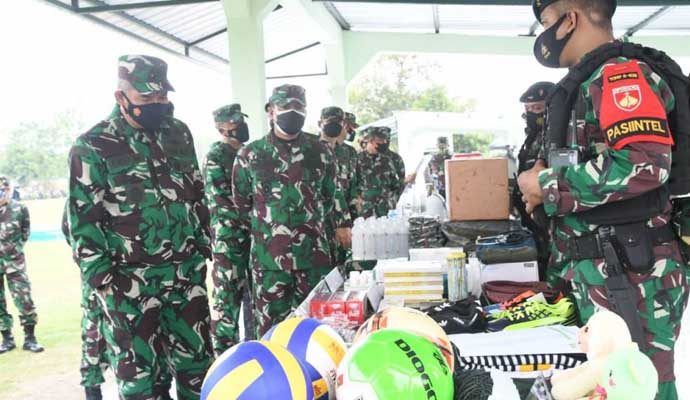INILAHONLINE.COM, SRAGEN — Yonif Raider 408/ Suhbrastha menerima kunjungan Kasum TNI Letnan Jenderal TNI Eko Margiyono yang didampingi Pangdam IV/Diponegoro Mayjen TNI Rudianto dalam rangka pemeriksaan kesiapan operasi (Riksiapops) Satgas Pamtas Penyangga (Mobile) RI-PNG, bertempat di Mayonif Raider 408/SBH Jl. Sukowati, Kabupaten Sragen. Kamis (22/07/2021).