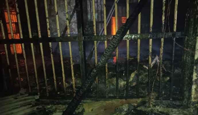 Informasi yang beredar di lokasi kejadian, penyebab kebakaran diduga arus pendek listrik.
