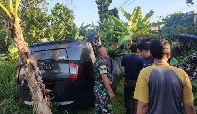 “Dugaan awal, saudara Riyan (38), warga Desa Slerok Kabupaten Tegal, mengemudikan mobilnya dari arah timur mengantuk saat di depan koramil sehingga mobil tiba-tiba menabrak tugu dan langsung masuk persawahan dengan posisi mobil terbalik,” terangnya.