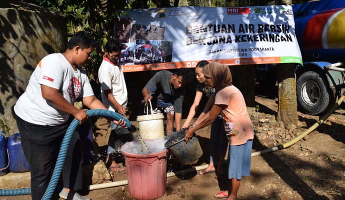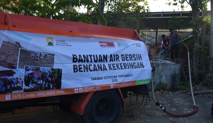 Sejak pekan lalu, ACT DIY mulai menyalurkan bantuan air bersih untuk mengurangi dampak kekeringan yang semakin parah, ACT mengirimkan 50 ribu liter air bersih ke dua kecamatan, Girisubo dan Rongkop, yang ada di Gunungkidul. Di dua kecamatan ini, air bersih didistribusikan ke empat desa yang mengalami dampak terparah kekeringan serta masyarakat ekonomi prasejahtera.