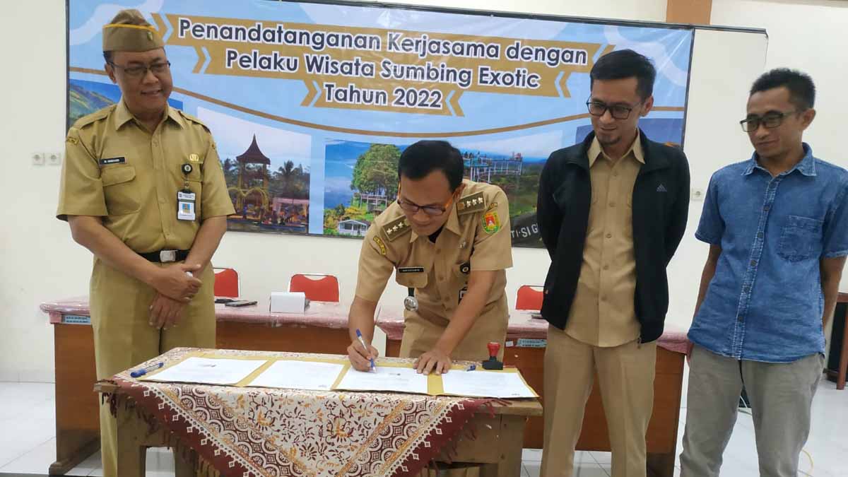 INILAHONLINE.COM, KALIANGKRIK — Komunitas Sumbing Exotic (KSE) menandatangani naskah kerja sama dengan Pemerintah Kecamatan Kaliangkik, Kabupaten Magelang. Kerjasama dituangkan dalam Memorandum of Understanding (MoU) tersebut, bertujuan menguatkan antar destinasi untuk saling mendukung dalam mengembangkan destinasi wisata di lereng Gunung Sumbing bagian selatan.