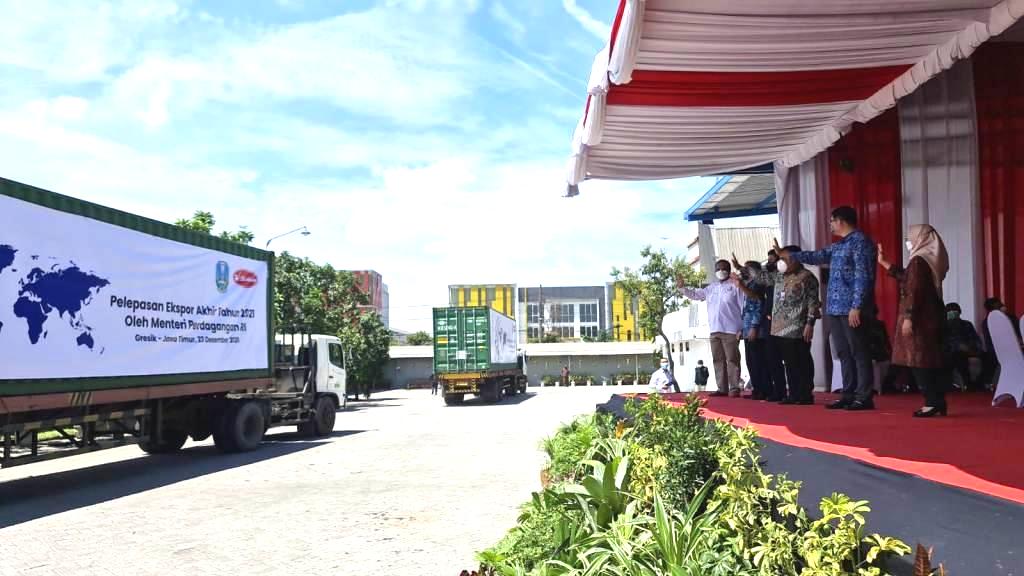 “Kesempatan pelepasan Ekspor 2021 hari ini, Kementrian Perdagangan Republik Indonesia mengucapkan terima kasih kepada Dinas Perindustrian dan Perdagangan Provinsi Jawa Timur, KADIN Jawa Timur, Pemerintah Kabupaten Gresik, Dirjen Bea Cukai Wilayah Gresik dan Dinas Koperasi,” tutur Richard