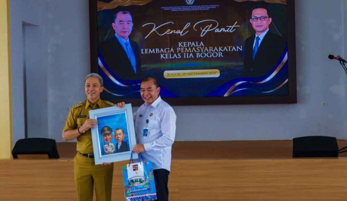 INILAHONLINE.COM, KOTA BOGOR — Wali Kota Bogor, Dedie A. Rachim menghadiri kegiatan kenal pamit Kepala Lapas Kelas IIA Bogor dari Muchamad Mulyana kepada Raden Budiman Priyatna Kusumah di Aula Sahardjo, Lapas Kelas IIA Bogor, Senin (29/9/2025).