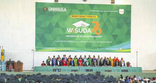 Unissula melepas 1637 wisudawan dalam pelaksanaan wisuda ke 76 di Auditorium Unissula pada Jumat – Sabtu, tanggal 19 – 20 Oktober 2018.