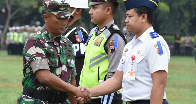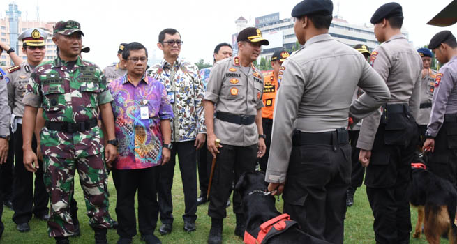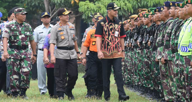 Apel bersama dalam rangka pengecekan kesiapan personel dan alat perlengkapannya menghadapi perayaan Natal 2018 dan tahun baru 2019 ini, dipimpin Gubernur Jateng Ganjar Pranowo didampingi Kapolda Jateng Irjen Pol Condro Kirono dan Asops Kasdam IV/Diponegoro Kolonel Inf Denny Fardany.