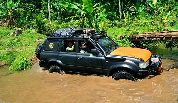 Untuk menuju salah satu lokasi bhakti sosial yakni perkebunan Sentool Zidam V/Brawijaya yang terletak di Desa Suci, Kecamatan Panti, Jember, Dankodiklatad dan rombongan menggunakan kendaraan 4×4 guna melintasi jalur yang sukar dilalui seperti jalur berbatu dan sungai.