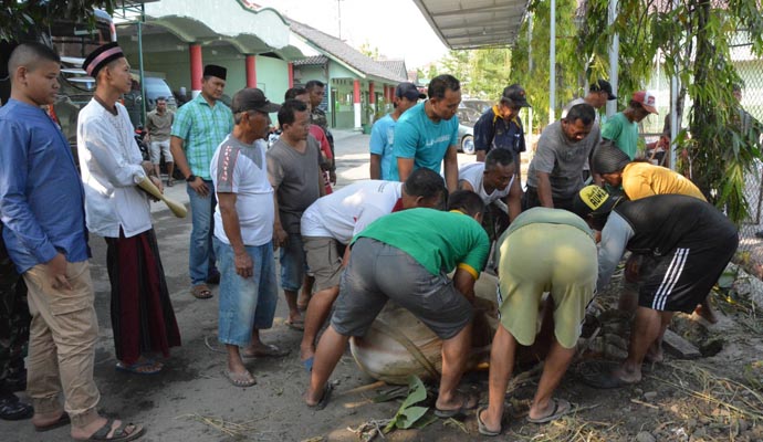 Seusai Sholat Idul Adha, Kodim 0713 Brebes, yang melakukan pemotongan hewan qurban di halaman parkir Makodim 0713 Jalan Jenderal Soedirman Nomor 107, Brebes, Jawa Tengah, Minggu (11/08/2019).