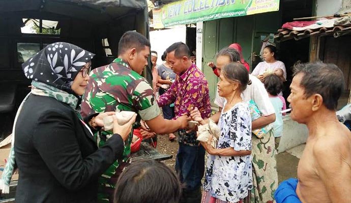 Bantuan logistik untuk para korban banjir terdampak jebolnya 4 titik tanggul Sungai Babakan di Kecamatan Ketanggungan, Kabupaten Brebes, Jawa Tengah, terus berdatangan di Posko Bencana Alam (Bencal) yang berada di Makoramil 15 Ketanggungan, Kodim 0713 Brebes, Jalan Jenderal Sudirman No. 57, Ketanggungan. Jumat (10/1/2020).