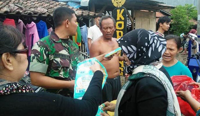 Selain membantu di Dapur Umum (DU) BPBD Brebes yang juga berada di Makoramil, timnya juga membantu masyarakat untuk melaksanakan bersih-bersih rumah dari lumpur.