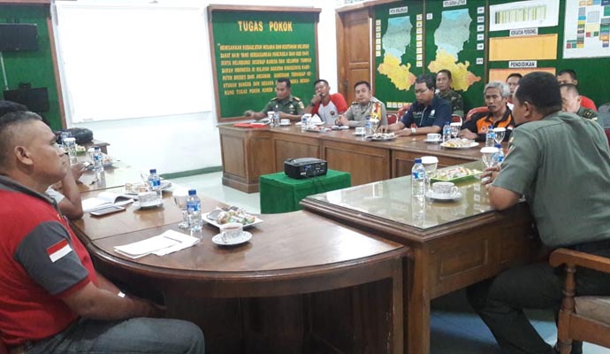 Acara yang digelar di Ruang Data Makodim ini melibatkan lintas sektoral Kabupaten Brebes, meliputi Kodim, Polres, BPBD, Satpol PP, Dishub, Dinsos, Dinas PU, PMI serta BMKG Karesidenan Pekalongan wilayah Tegal.