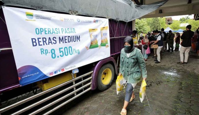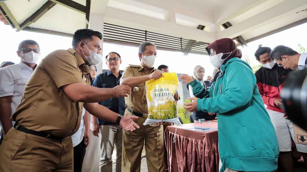 INILAHONLINE.COM, BANDUNG — Pemerintah Kota (Pemkot) Bandung bersama Bulog Kota Bandung dan Bank Indonesia mengadakan operasi pasar untuk beras medium di Kantor Bulog, Rancasari Kota Bandung, Selasa 14 Februari 2023.