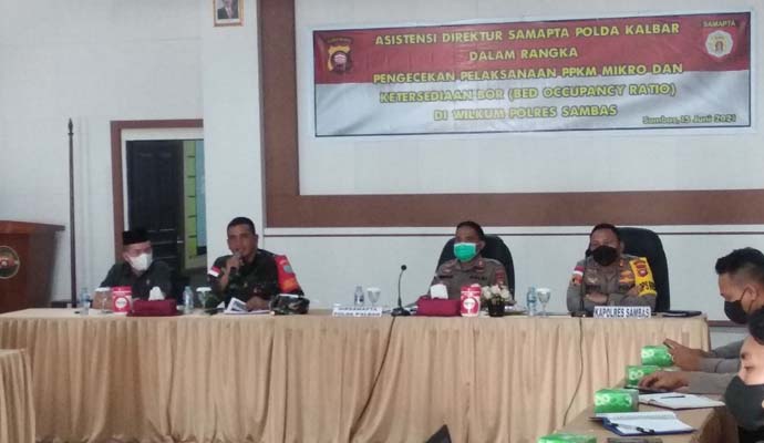 INILAHONLINE.COM, SAMBAS – Bertempat di Aula Dhirga Polres Sambas, Jl. Kartiasa, Desa Lorong, Kec. Sambas, Kab. Sambas, telah dilaksanakan Kegiatan Asistensi Direktur Samapta Polda Kalbar dalam Rangka Pengecekan Pelaksanaan PPKM Mikro dan ketersediaan BOR (Bed Occupancy Ratio) di Wilkum Polres Sambas.