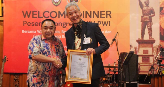 Gubernur Jawa Tengah Ganjar Pranowo resmi menjadi anggota kehormatan PWI ke-39, Kamis (27/9) di Balaikota Surakarta. Dia lantas menjabarkan tantangan dunia pers ke depan, pendidikan dini serta penghargaan bagi tokoh senior pers.