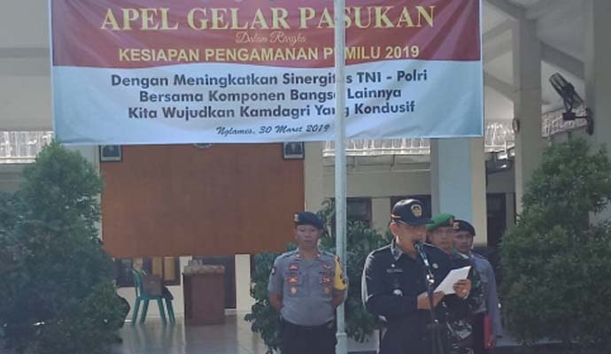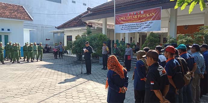 Camat Madiun Didik Harianto, Msi., memimpin apel gelar pasukan tingkat Kecamatan dalam rangka pengamanan Pemilihan legislatif (Pileg) dan Pemilihan Presiden (Pilpres) tahun 2019.