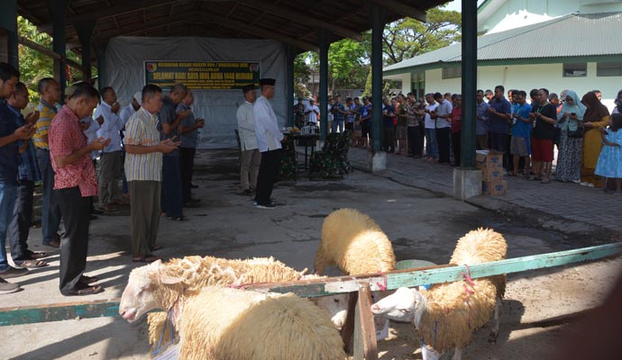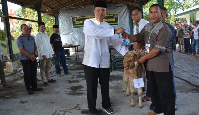 Terpisah, Sumarlan (45), salah satu warga penerima daging qurban mengaku sangat antusias dengan adanya pembagian daging yang berlangsung di Makorem saat ini. “Lokasinya cukup luas, kami tidak perlu berdesak-desakan pak,” cetus Sumarlan.