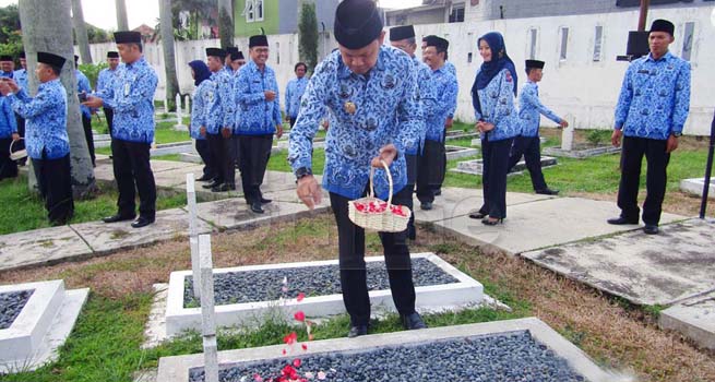 InilahOnline.com (Kota Bogor) – Dalam rangka memperingati HUT KORPRI ke-46 tingkat Kota Bogor tahun 2017, ratusan PNS di lingkungan Pemerintah Kota (Pemkot) Bogor mengikuti Ziarah dan Tabur Bunga ke Taman Makam Pahlawan Dreded di Jalan Pahlawan, Kota Bogor, Sabtu (02/12/2017).