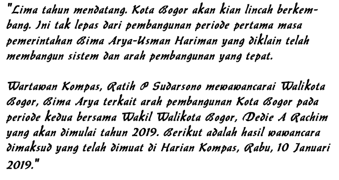 Saya baru dapat laporan dari Badan Pusat statistik (BPS) tahun 2018, angka kemiskinan turun signifikan dibandingkan dengan laporan tahun sebelumnya. Pengadilan Negeri Agama Kota Bogor memberikan informasi, pertama kali terjadi penurunan angka perceraian sampai 10 persen pada 2018 ketimbang 2017. Selama ini, setiap tahun meningkat. Terus terang, saya sangat terkejut. Ini memang perlu ditelusuri lagi, apa yang membuat dua hal yang membiarkan itu terjadi. Namun, angka sudah berbicara. Ini sangat saya syukuri.