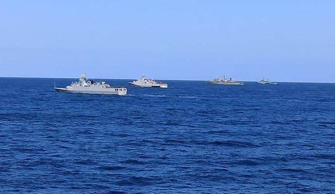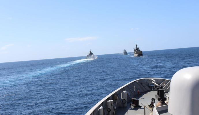 KRI Sultan Hasanuddin 366 melaksanakan latihan manuver taktis dengan empat kapal MTF UNIFIL dari negara lain di Area of Maritime Operation (AMO).