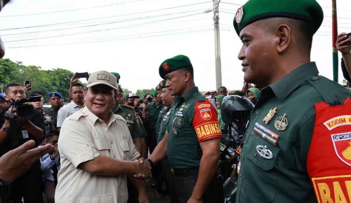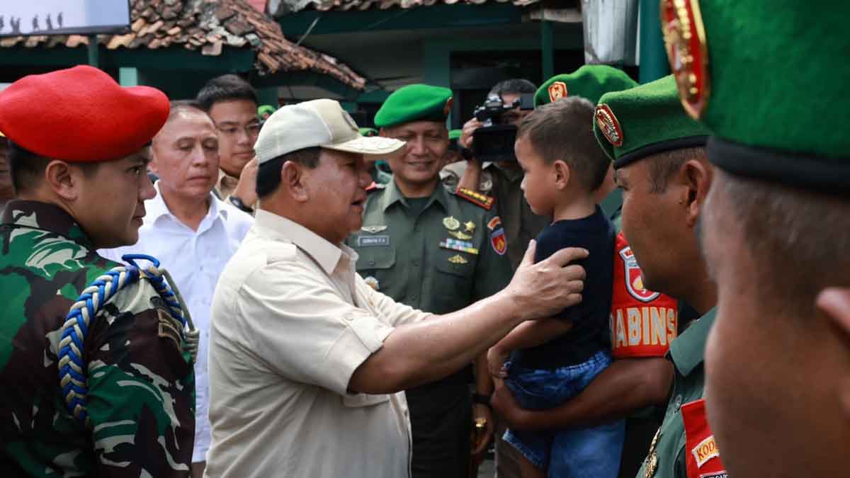 Menhan Prabowo juga sempat menyapa anak-anak dari anggota Babinsa. “Berapa umurnya, 5 tahun. Kamu mau jadi apa? Mau jadi Kapten. Oke kamu nanti akan jadi jenderal yang kuat,” ujar Menhan Prabowo.
