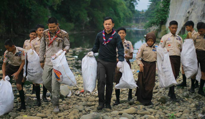 “Sampah itu harus diurus dan dikelola, bukan dibakar, apalagi dibuang disembarang tempat,” kata Bima di sela kegiatan bersih-bersih di bantaran Sungai Ciliwung bersama ratusan anggota Gerakan Pramuka Kwarcab Kota Bogor, di Kawasan Pasar Jambu Dua Blok A, Kota Bogor, Sabtu (20/07/2019) pagi.