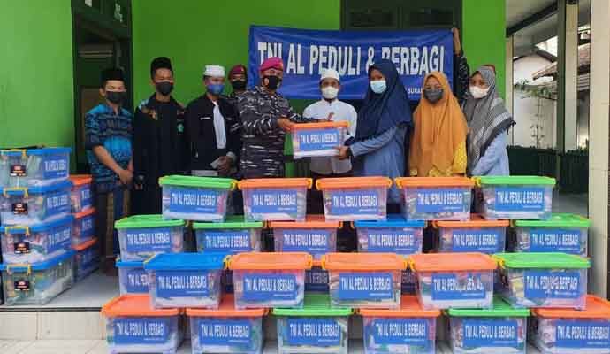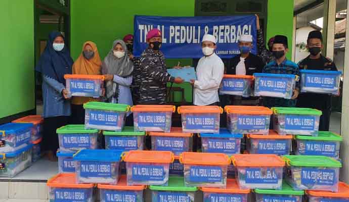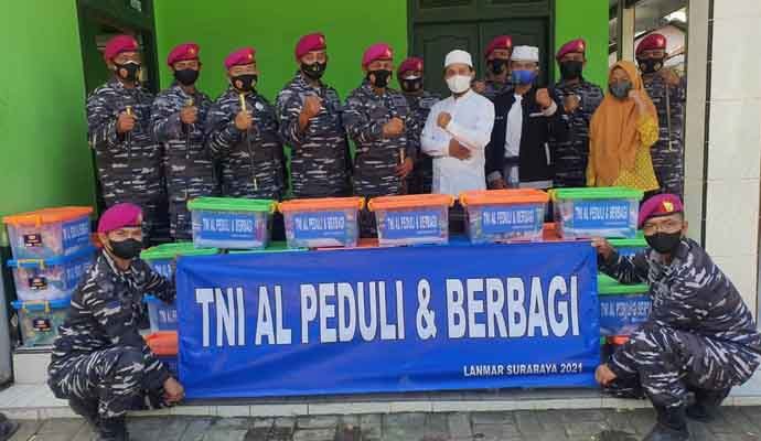Penyerahan tali asih dan paket sembako bertajuk “TNI AL PEDULI dan BERBAGI” itu dilakukan langsung oleh Komandan Lanmar Surabaya Kolonel Mar Idi Rizaldi yang didampingi sejumlah Perwira Staf dan para Komandan Satlak Lanmar Surabaya, diterima langsung oleh Pengasuh Pondok Pesantren Wisma Wisnu Madiun, Gus Kholid didampingi Staf.