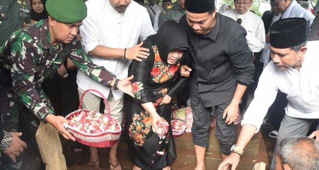 Pada saat proses tabur bunga, Nurhayanti tampak tak kuat menahan tangis dan mengikhlaskan suaminya untuk pergi selamanya. “Mamah sudah ikhlas pah,” katanya saat menaburkan bunga ke makam mendiang suaminya.