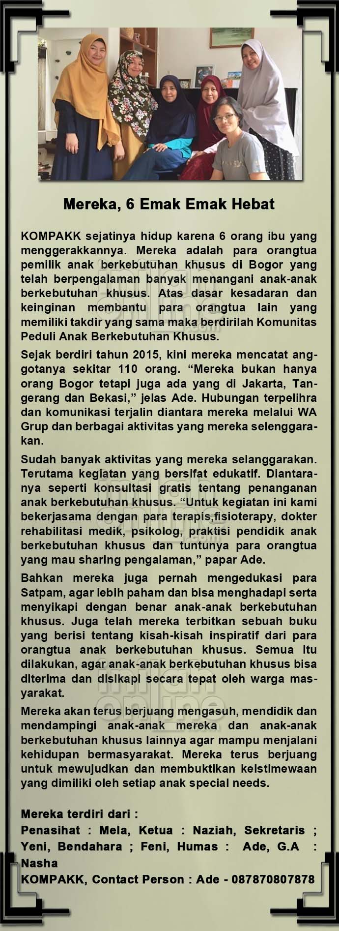 Semua kegiatan yang dilaksanakan KOMPAKK dengan dukungan berbagai pihak sejak tahun 2015 itu, tidak laih adalah bentuk kampanye dan ajang edukasi kepada masyarakat tentang perlunya pengenalan, pemahaman dan pengertian oleh setiap anggota masyarakat tentang anak-anak berkebutuhan khusus. Mereka bukan saja anak-anak penderita autis tetapi juga 14 kelompok anak-anak penderita gangguan perkembangan lainnya yang tergolong sebagai Anak Berkebutuhan Khusus.