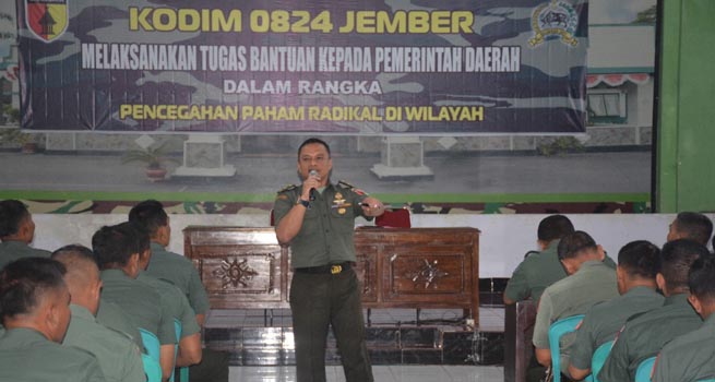 Komandan Kodim (Dandim) 0824/Jember, Letkol Inf Arif Munawar yang membacakan amanat Komandan Korem 083/Baladhika Jaya, mengatakan, guna menangkal sekaligus mengantisipasi keberadaan pemahaman-pemahaman yang bertentangan dengan ideologi bangsa (Pancasila), aparat Komando kewilayahan (Apkowil) dituntut untuk mampu mengolah potensi wilayah yang meliputi geografi, demografi hingga kondisi sosial.