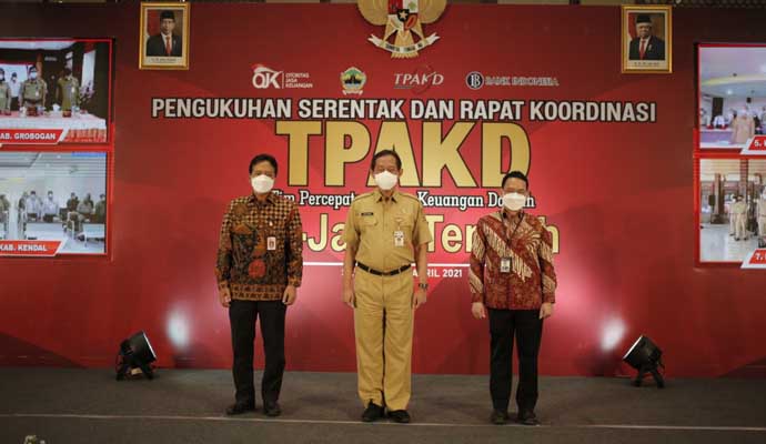 “Dengan dikukuhkannya 8 TPAKD tingkat Kabupaten baru yaitu Kabupaten Blora, Kabupaten Kendal, Kabupaten Magelang, Kabupaten Grobogan, Kabupaten Wonosobo, Kabupaten Semarang, Kabupaten Pati, dan Kabupaten Jepara, maka saat ini seluruh kabupaten/kota di Jawa Tengah telah terdapat TPAKD serta 1 TPAKD di tingkat Provinsi, yang dapat berperan efektif dalam melaksanakan program-program yang tujuan akhirnya mewujudkan pemulihan ekonomi nasional, “papar Aman.