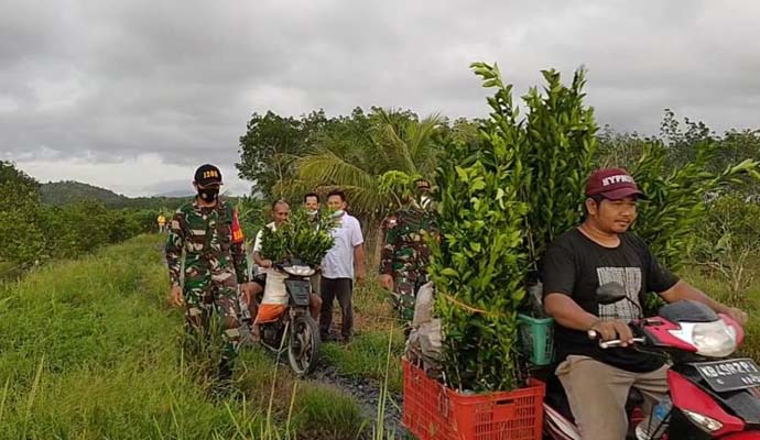 INILAHONLINE.COM, SAMBAS – Kodim 1208/Sambas melalui Koramil 03/Tebas Komitmen mendukung pemerintah dalam pemulihan ekonomi nasional di masa pandemi Covid-19 dengan membantu meningkatkan perekonomian masyarakat, dengan menanam Pohon Jeruk yang berada di Desa Makrampai, Kecamatan Tebas, Kabupaten Sambas, Kalbar, Minggu (23/5/2021).