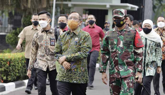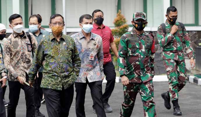 Selain disambut oleh Pangdam V/Brawijaya, Mayjen TNI Suharyanto. Kunjungan kerja yang dilakukan oleh Mahfud MD tersebut juga turut dihadiri oleh Gubernur Jawa Timur, Khofifah Indar Parawansa, Kapolda Jatim, Irjen pol Nico Afianta beserta beberapa pejabat lainnya. (Soleh Widarto)