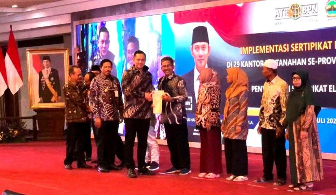Dalam kesemptan menyerahkan sertifikat elektronik kepada penerima yang ada di Jateng. AHY juga mengapresiasi Kantor Pertanahan di Jateng yang sudah mengeluarkan Sertifikat Tanah Elektronik yang akan memudahkan masyarakat.