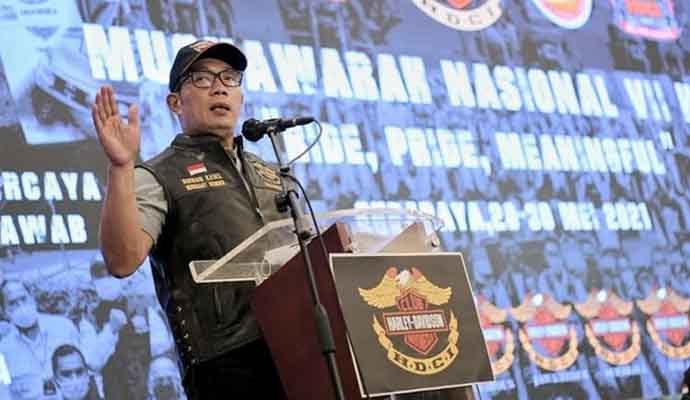 INILAHONLINE.COM, SURABAYA – Gubernur Jawa Barat (Jabar) Mochamad Ridwan Kamil menghadiri rangkaian Musyawarah Nasional (Munas) VII Harley-Davidson Club Indonesia (HDCI) di Hotel JW Marriot Surabaya, Sabtu (29/05/2021). Dalam acara tersebut, gubernur mengajak anggota HDCI untuk promosikan wisata Indonesia secara masif.
