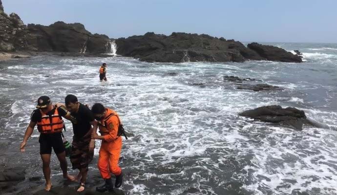 Setibanya di bebatuan karang tersebut, korban langsung naik ke bebatuan karang karena ingin melihat kapal nelayan yang masih berada di tengah laut. Namun, pada waktu yang bersamaan, datang ombak besar yang menghantam batu karang tersebut dan menyeret korban hingga terjatuh ke laut.