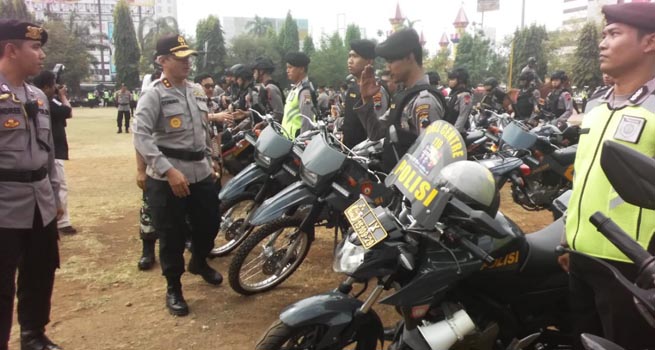 Kepolsian Daerah Jateng menggelar apel pasukan guna mengecek kesiapan personel, sarana dan prasarana sebelum diterjunkan untuk melaksanakan pengamanan Pemilu 2019.