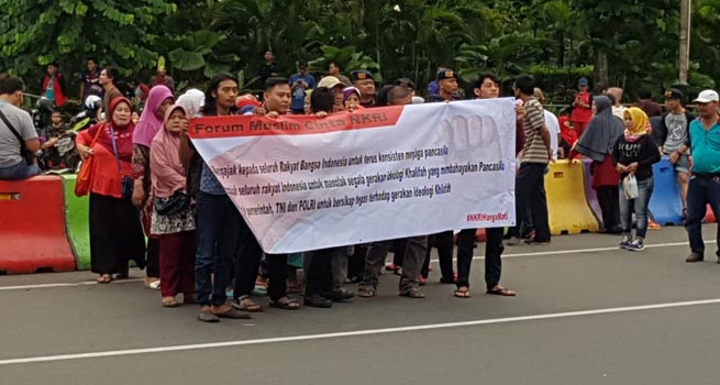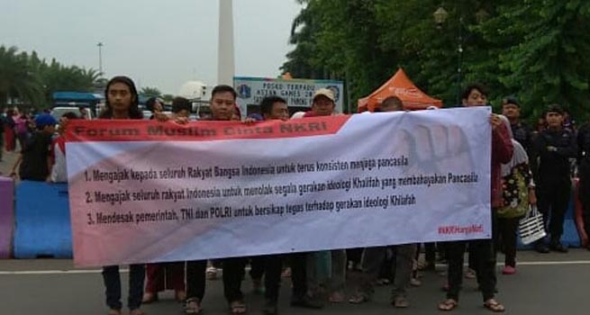 Acara Khilafah Internasional deras dukungan penolakan dari kalangan masyarakat Indonesia, kali ini datang dari Forum Muslimin Cinta NKRI yang menggelar aksi di Car Free Day bunderan patung kuda Monas Jakarta Pusat, pada Minggu, (18/11/2018)