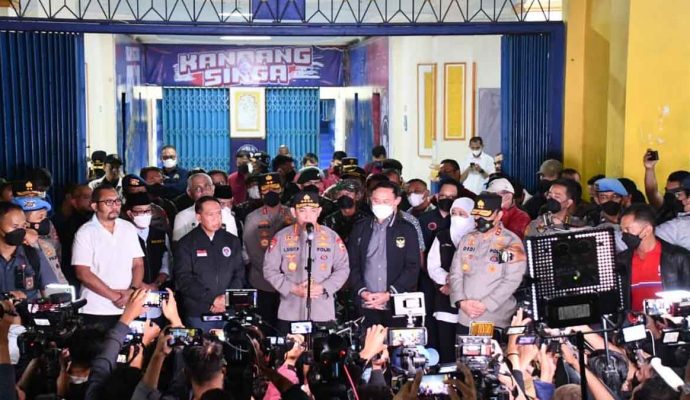 INILAHONLINE.COM, SURABAYA — Pangdam V/Brawijaya, Mayjen TNI Nurchahyanto, M. Sc, mendampingi kunjungan kerja Kapolri, Jenderal Listyo Sigit Prabowo, Menteri Pemuda dan Olahraga, Zainudin Amali dan Ketum PSSI, Mochammad Iriawan di Stadion Kanjuruhan, Kabupaten Malang pada Minggu, (02/10/2022).