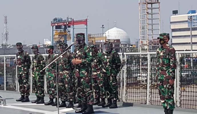 Laksamana Madya TNI I Nyoman Gede Ariawan, S.E., M.M. selaku Panglima Komando Wilayah Pertahanan I (Pangkogabwilhan I) memimpin apel pemberangkatan personel Kogabwilhan I, ke Tanjung Pinang (Kepualauan Riau) dalam rangka menempati kantor Sementara di Tg. Pinang untuk pelaksanaan apel di Geladak Helly KRI Semarang 594, bertempat di Dermaga JICT II Tg. Priok, Kamis (17/09/2020).
