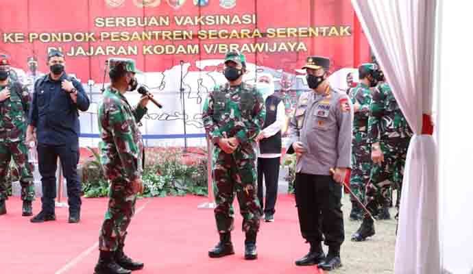 Hal tersebut disampaikan oleh Panglima TNI Marsekal TNI Hadi Tjahjanto, S.I.P., bersama Kapolri Jenderal Pol Drs. Listyo Sigit Prabowo, M.Si. saat meninjau serbuan vaksinasi dan diskusi bersama Forkopimda dan para Kyai dan Ulama, bertempat di Pondok Pesantren Tebuireng, Jombang, Jawa Timur, Rabu (25/8/2021).