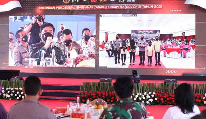 INILAHONLINE.COM, JAKARTA — Panglima TNI Marsekal TNI Hadi Tjahjanto, S.I.P. bersama Kapolri Jenderal Polisi Drs. Listyo Sigit Prabowo, M.Si., menghadiri acara Dukungan Psikososial Bagi Anak-Anak Terdampak Covid-19 dengan tema “Peduli Anak, Indonesia Tangguh”, bertempat di Lemdiklat Polri, Jakarta Selatan, Selasa (2/11/2021).