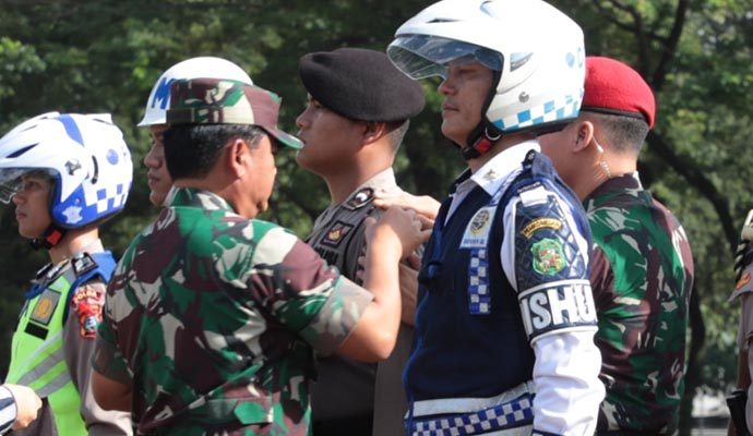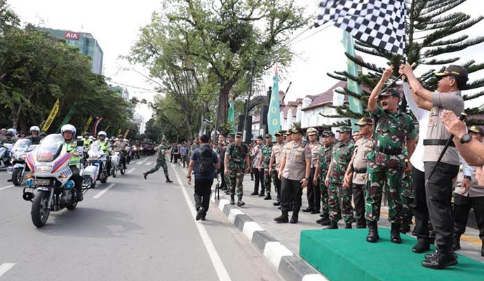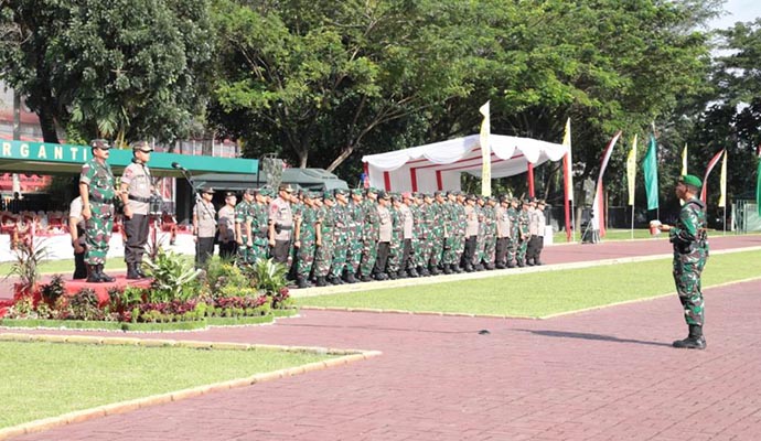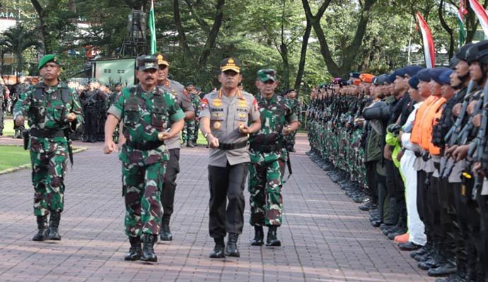 Panglima TNI Marsekal TNI Dr. (H.C.) Hadi Tjahjanto, S.I.P. dan Kapolri Jenderal Pol Drs. Idham Azis, M.Si. memimpin Apel Gelar Pasukan Pengamanan Natal 2019 dan Tahun Baru 2020 di Lapangan Benteng, Medan, Sumatera Utara, Kamis (19/12/2019).