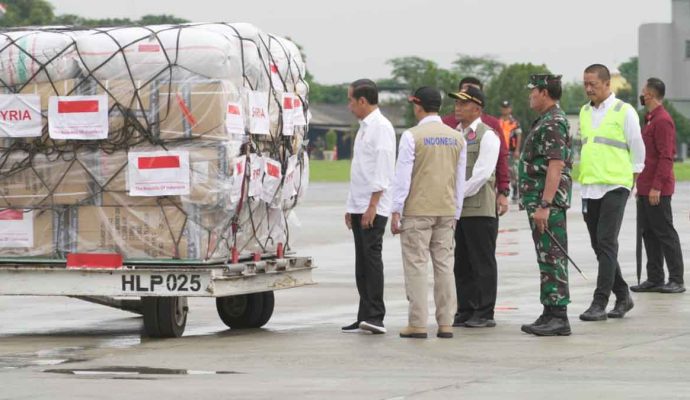 INILAHONLINE.COM, JAKARTA — Panglima TNI Laksamana TNI Yudo Margono mendampingi Presiden Republik Indonesia Ir. Joko Widodo mengirimkan bantuan kemanusiaan pemerintah Indonesia untuk Turki dan Suriah, bertempat di Base Ops Lanud Halim Perdana Kusuma, Jakarta, Selasa (21/2/2023).